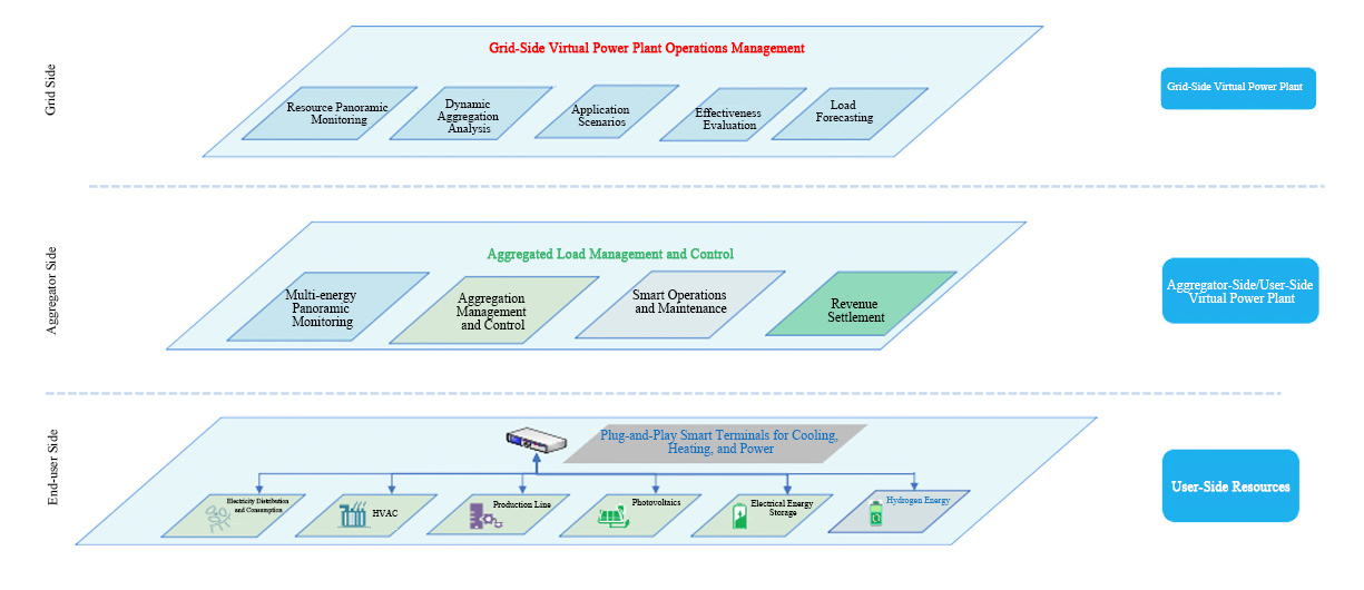 Virtual power plants focus on core functions such as panoramic monitoring, aggregation analysis, multi-level optimal dispatch, multi-application scenario control, and response effect evaluation of distributed flexible resources. Achieves integrated monitoring, collaborative optimization, and flexible control of various resources aggregated within virtual power plants, including photovoltaics, energy storage, charging piles, and adjustable loads. By providing a unified regulation and management platform to efficiently integrate scattered resources, it transforms them into competitive virtual power plant entities, enhances grid interaction capabilities, and offers innovative solutions to modern grid challenges such as volatility and peak load pressure.