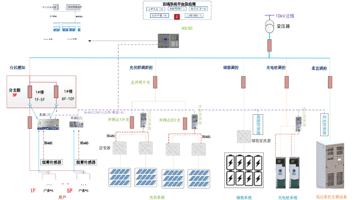 • 具备本地侧的微网控制策略,支持单台区的逆功率自动调节、电压治理、多台区协同等微网控制策略。